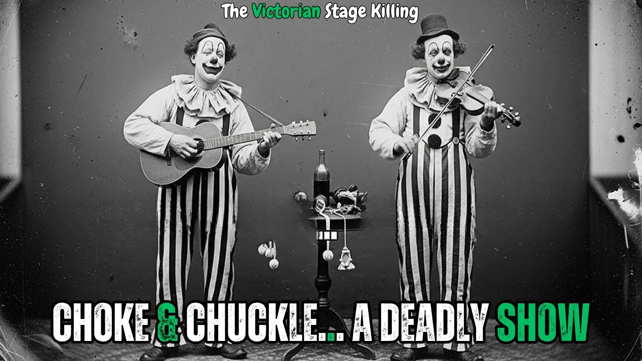 At first glance, the photograph looks harmless. Two Victorian clowns, their faces painted in permanent smiles, stand side by side holding musical instruments — one a violin, the other a guitar. The year is 1876. The caption beneath the faded image reads simply: “Choke & Chuckle, Musical Clowns.”