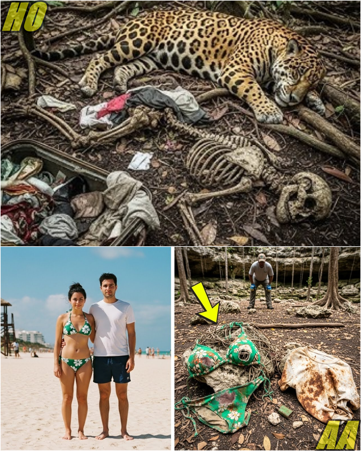 Almost six years later, in a dried-out cenote forgotten by time, Ernesto found something under a shriveled root: tangled fabric, not just branches, but cloth. Carefully, he pulled out a torn green-and-white floral bikini top with a dark hole on the left side, the matching bottom, also torn and marked by old moisture. Nearby, half-buried, was a dirty white t-shirt with dark stains, a shell earring, and a rusty green lighter. Ernesto froze, knowing exactly what he’d found. Without touching anything else, he called a contact in the environmental police.