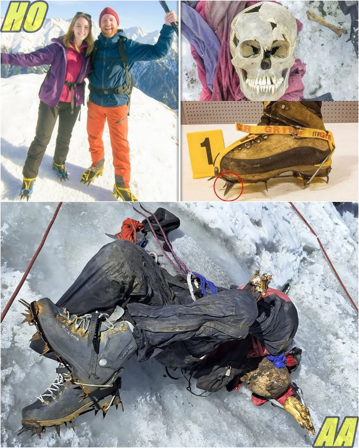 Weeks later, a ski mountaineer named Leo explored the altered terrain. He spotted a flash of pink and purple—fabric emerging from melting ice. It was a jacket sleeve, attached to a bone. Nearby, a human skull lay in a meltwater pool, ribs and vertebrae scattered around. A heavy mountaineering boot, with a yellow-strapped crampon, lay on its side. Leo realized the mountain was giving back one of its lost souls.