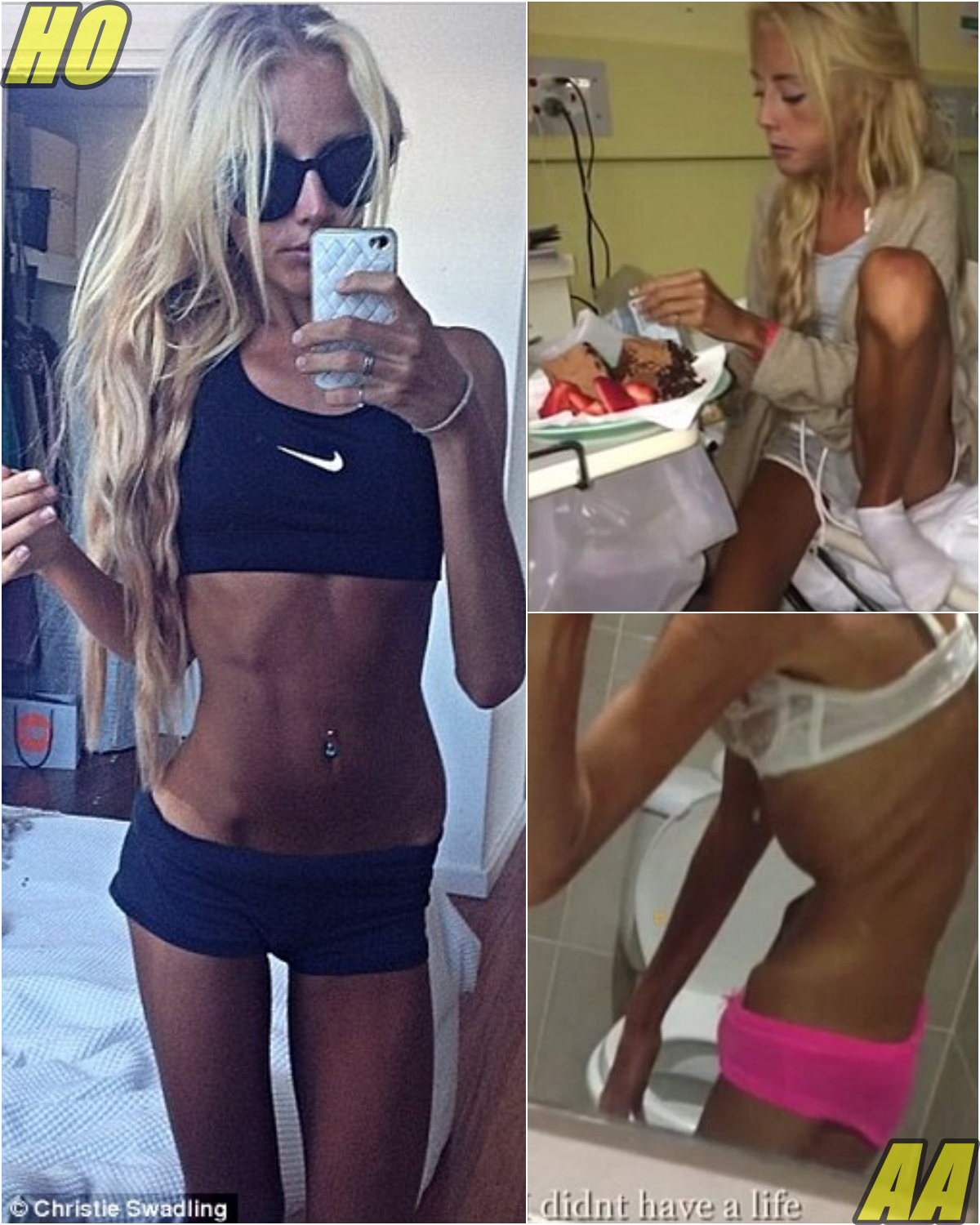 Christie (left) says the disease began when she compared herself to skinny Miranda Kerr and other models