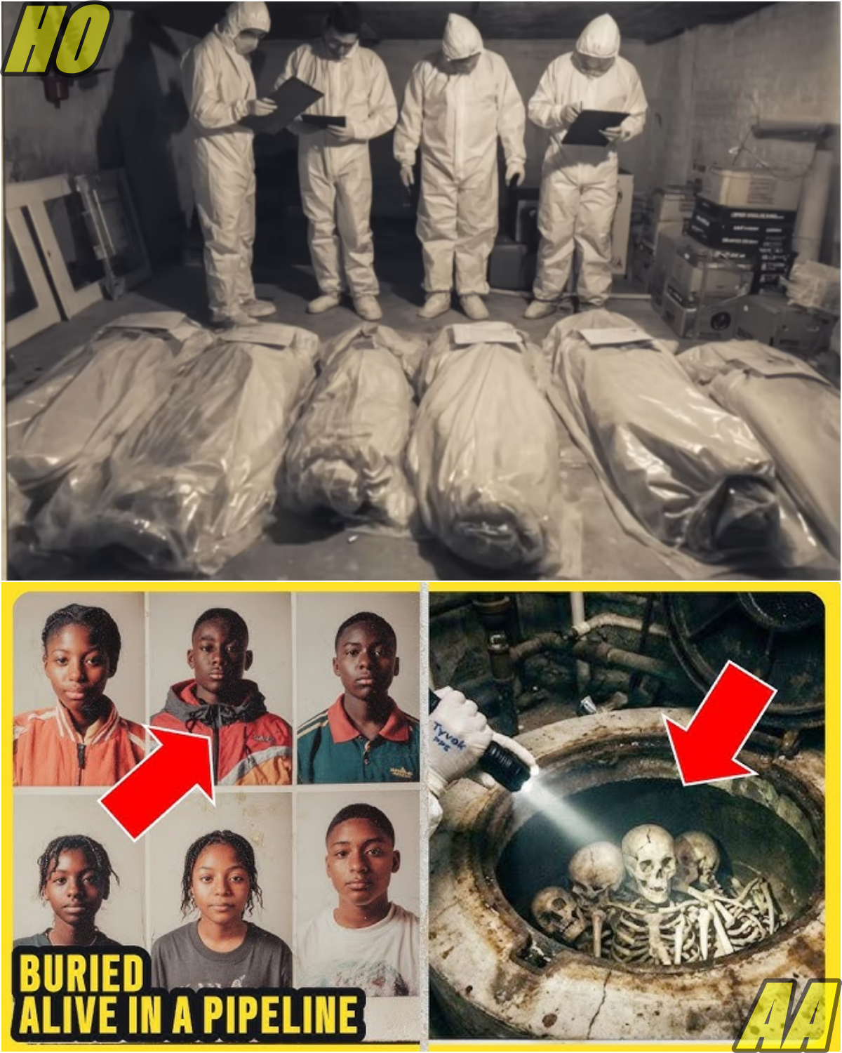 His flashlight beam landed on the unimaginable—bodies, small bodies, wrapped in plastic, stuffed into the drainage system. Six of them, tangled together, preserved with chemicals, hidden for years.