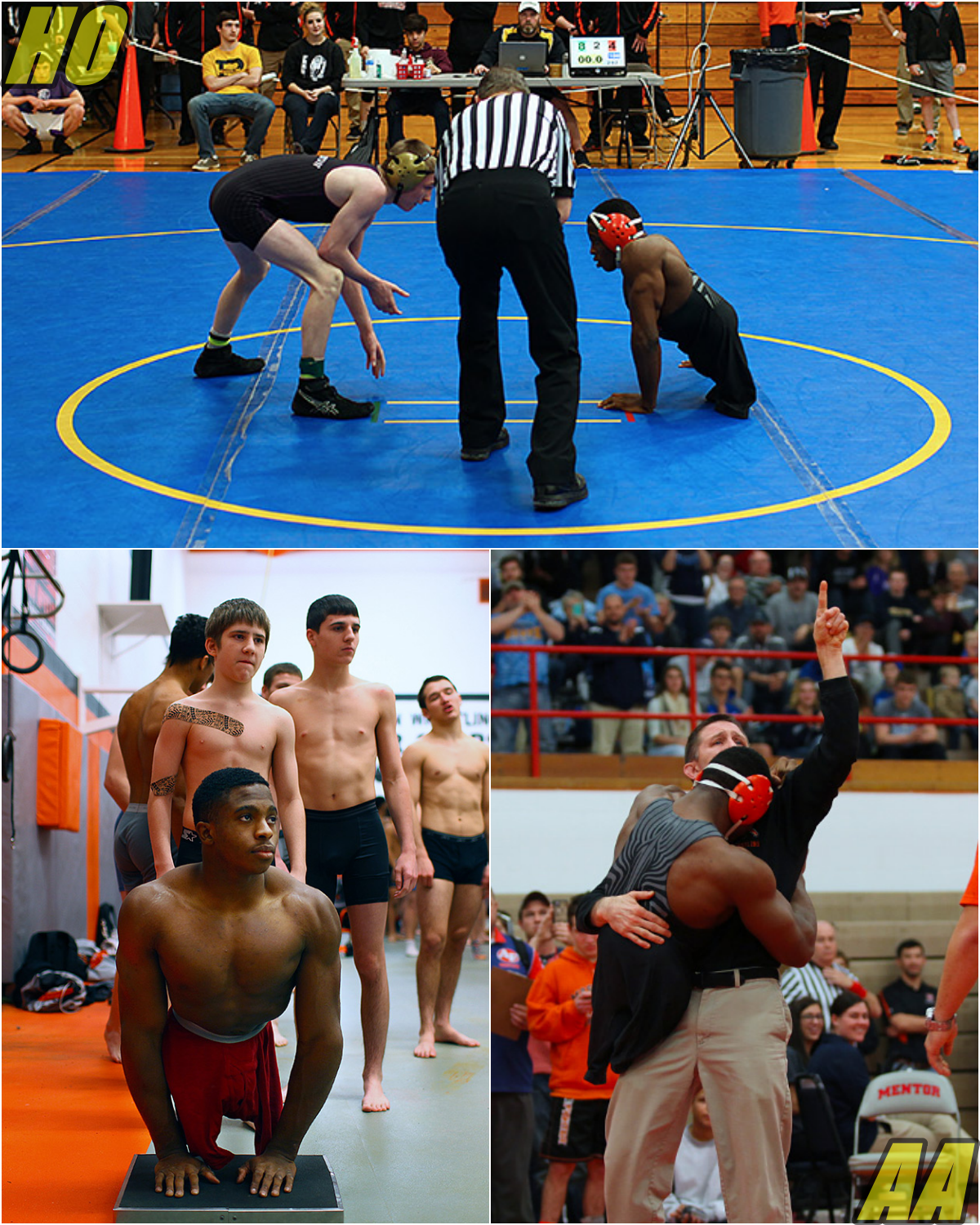 Donahue (right, orange shirt) and assistant McGhee bark instructions to Shaver during one of his district matches. Donahue concedes that he rode Shaver hard throughout his Massillon career, but the senior leaves the program as one of Donahue’s proudest pupils. “Coaching Zion has had a major impact on my life,” Donahue said. “He is an amazing person who has changed the way I look at life because of his positive outlook. He has a unique personality; he always sees the positive in any situation. It is hard to ever be in bad mood when you are in the presence of Zion.”